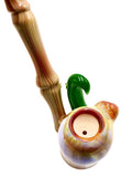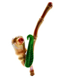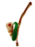 Functional art at its finest! Check out this electroplated bamboo-shaped dry sherlock hand pipe. Complete with a green leaf attached on the side. Makes for a great piece to add to your heady collection.