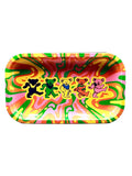Blazy Susan rectangular metal rolling trays with Grateful Dead designs on the front. Measures 18cm x 14cm. Very durable and portable!