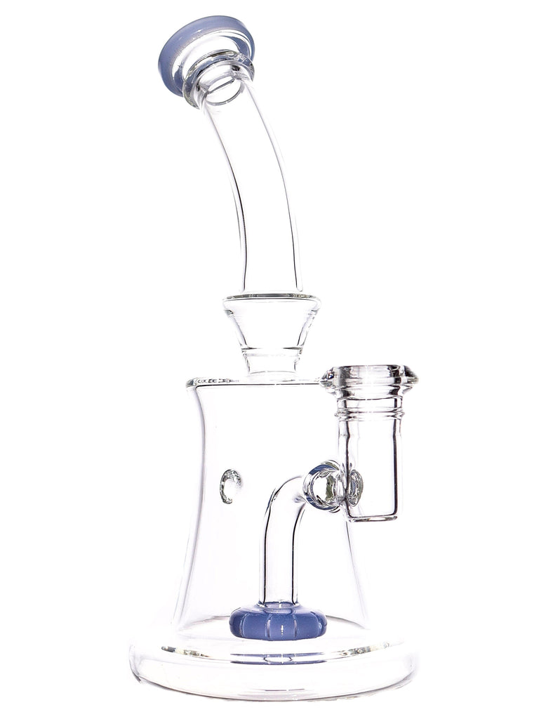 Clear glass pyramid can water rig, featuring a showerhead perc, accent colors, and a 14mm joint size. Great for flower or concentrate - upgrade to a quartz banger here.