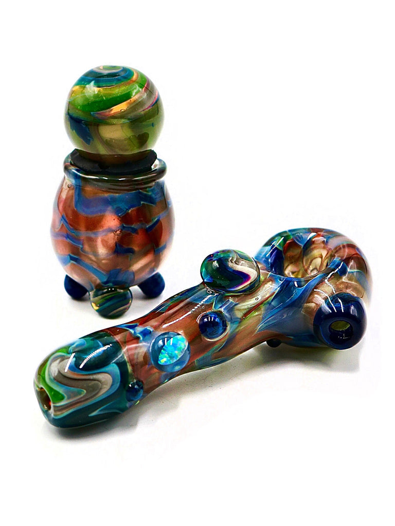 Fully Worked Milky Marble Hand Pipe with Matching Mini Stash Jar